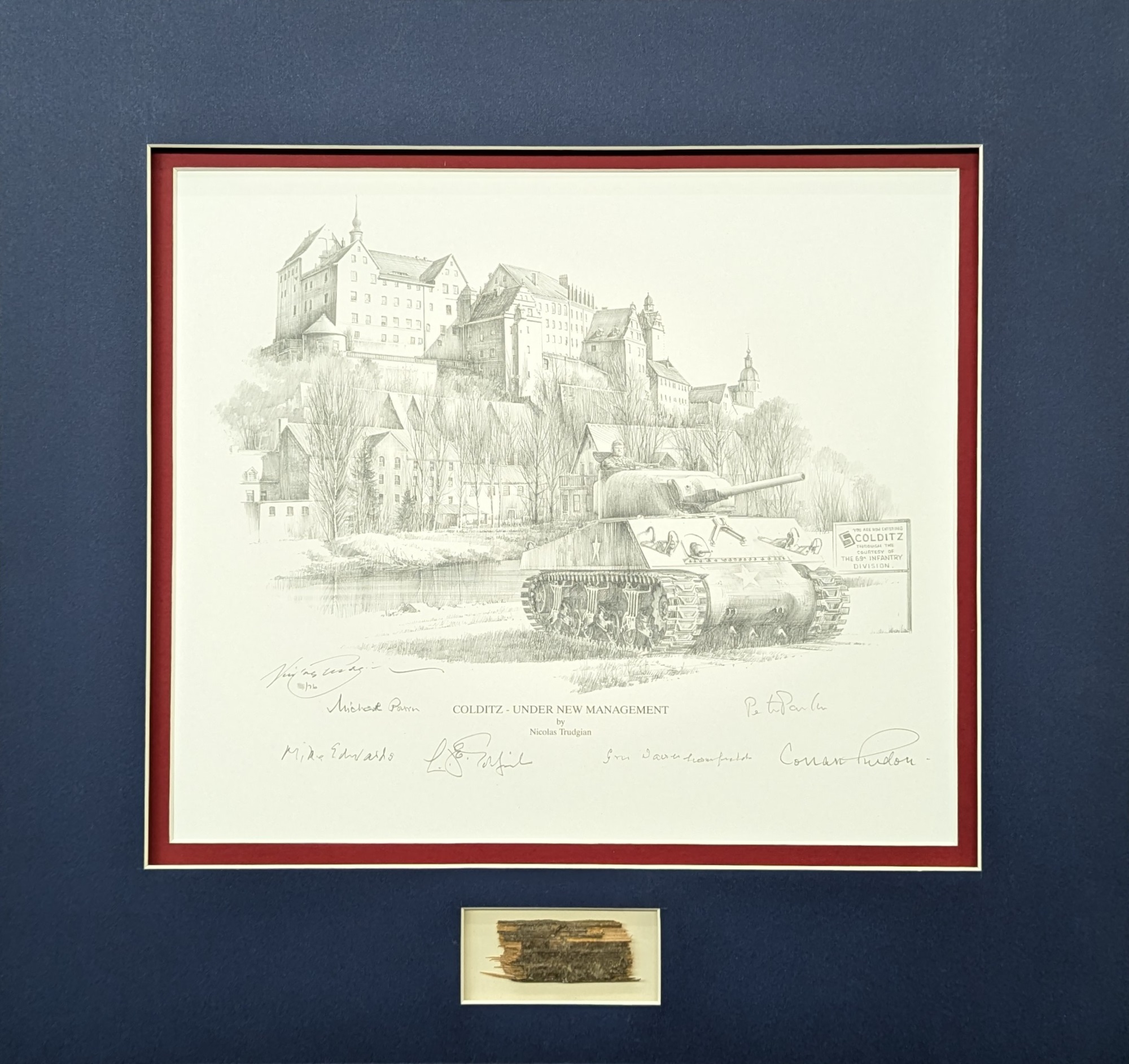 Along with artist Nicolas Trudgian, these prints are also signed by a soldier who spent two years in Colditz during WWII.