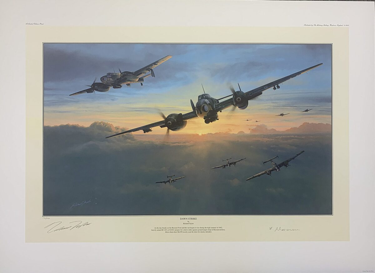 Now an established figure with aviation art collectors, Richard Tayor has once again used his inordinate skill to complete yet another masterful painting, a wonderfully atmospheric image that fuses the radiant beauty of nature with the perilous threat of war.