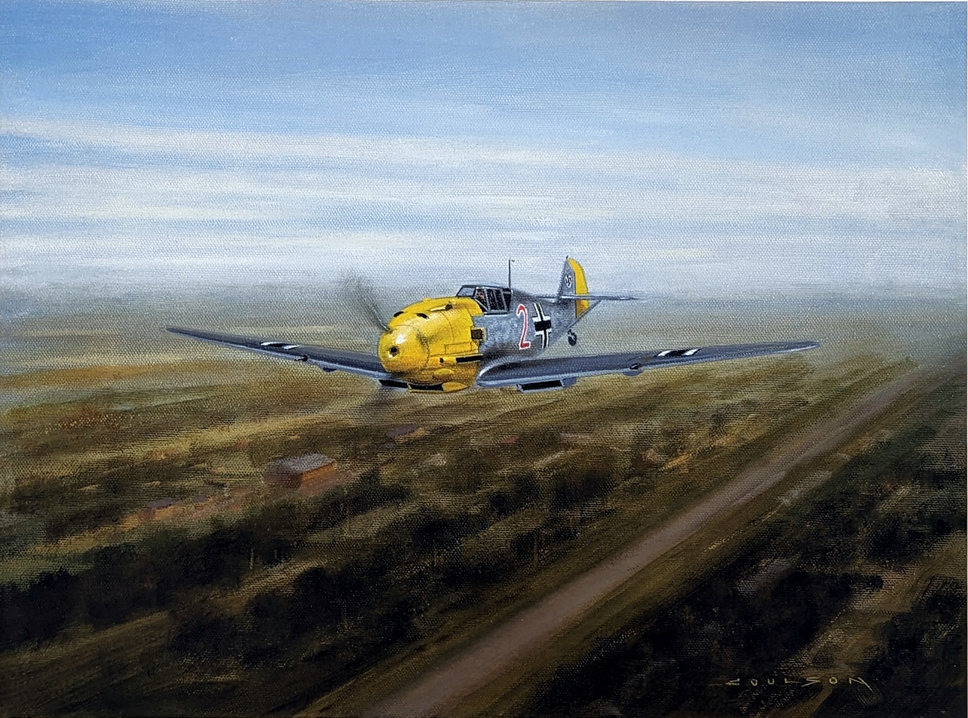 A Messerschmitt Bf109 flies low and fast over the Bavarian landscape, summer 1943.