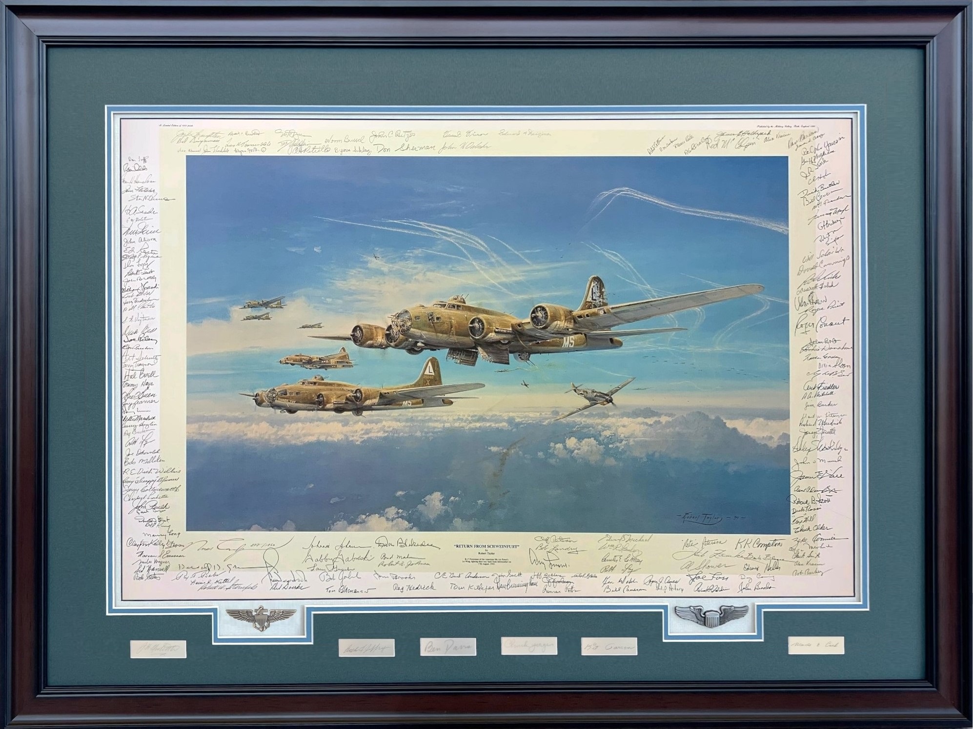 After it was first published in 1990 this copy was kept aside by Robert Taylor’s Publisher, and subsequently brought to many official Military Gallery signing events to be additionally autographed by US Airmen. Over a period of almost 30 years it has accumulated a truly astonishing number of autographs: a combination of Fighter Pilots with almost 770 victories between them, Bomber Crew from some of the most famous historic raids, Twenty Nine Generals and no less that Eleven recipients of the Medal of Honor: